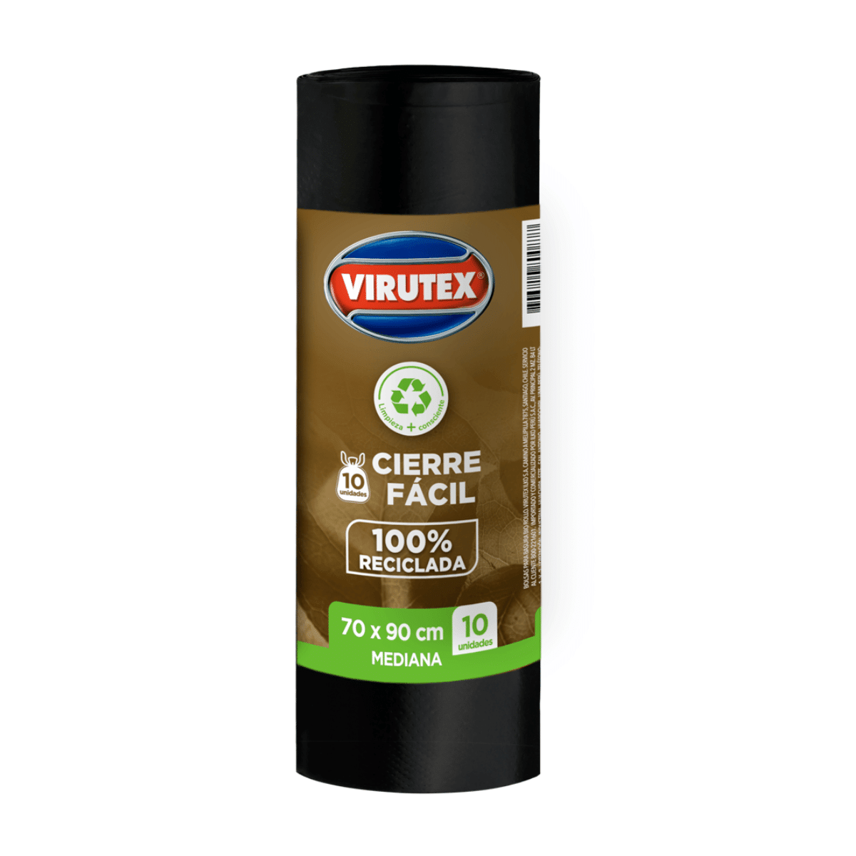 Bolsas de Basura Ecológicas Virutex Mediana Cierre Fácil 70×90 cm 10 Unid: Mediana, cierre fácil, uso práctico.