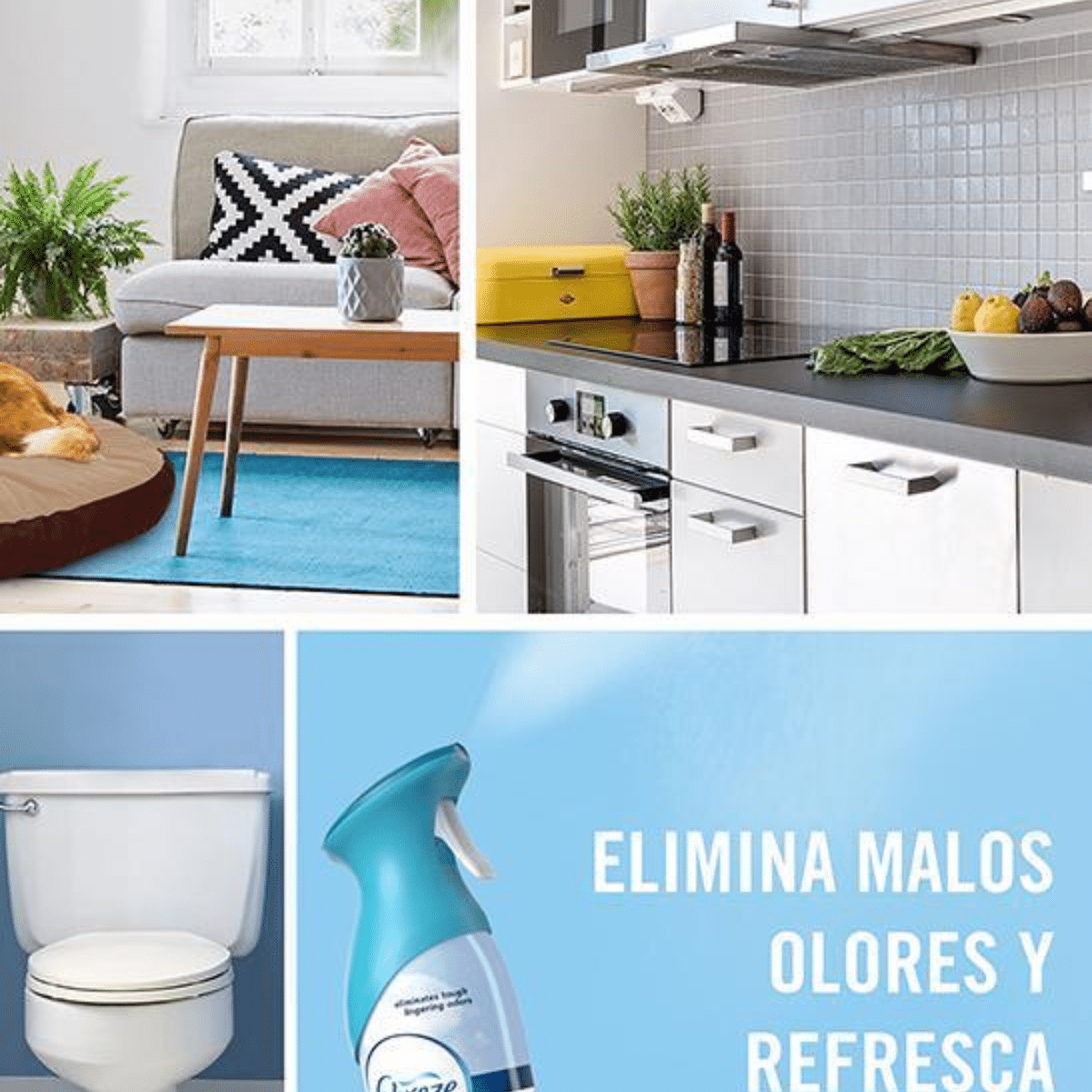 Febreze AIR no se conforma con disfrazar los olores, sino que va al origen del problema con su tecnología OdorClear. Esta avanzada tecnología actúa de manera efectiva para eliminar los malos olores, dejando en su lugar un ambiente fresco y agradable. Cada pulsación del gatillo libera una ráfaga de frescura que transforma instantáneamente tu espacio.