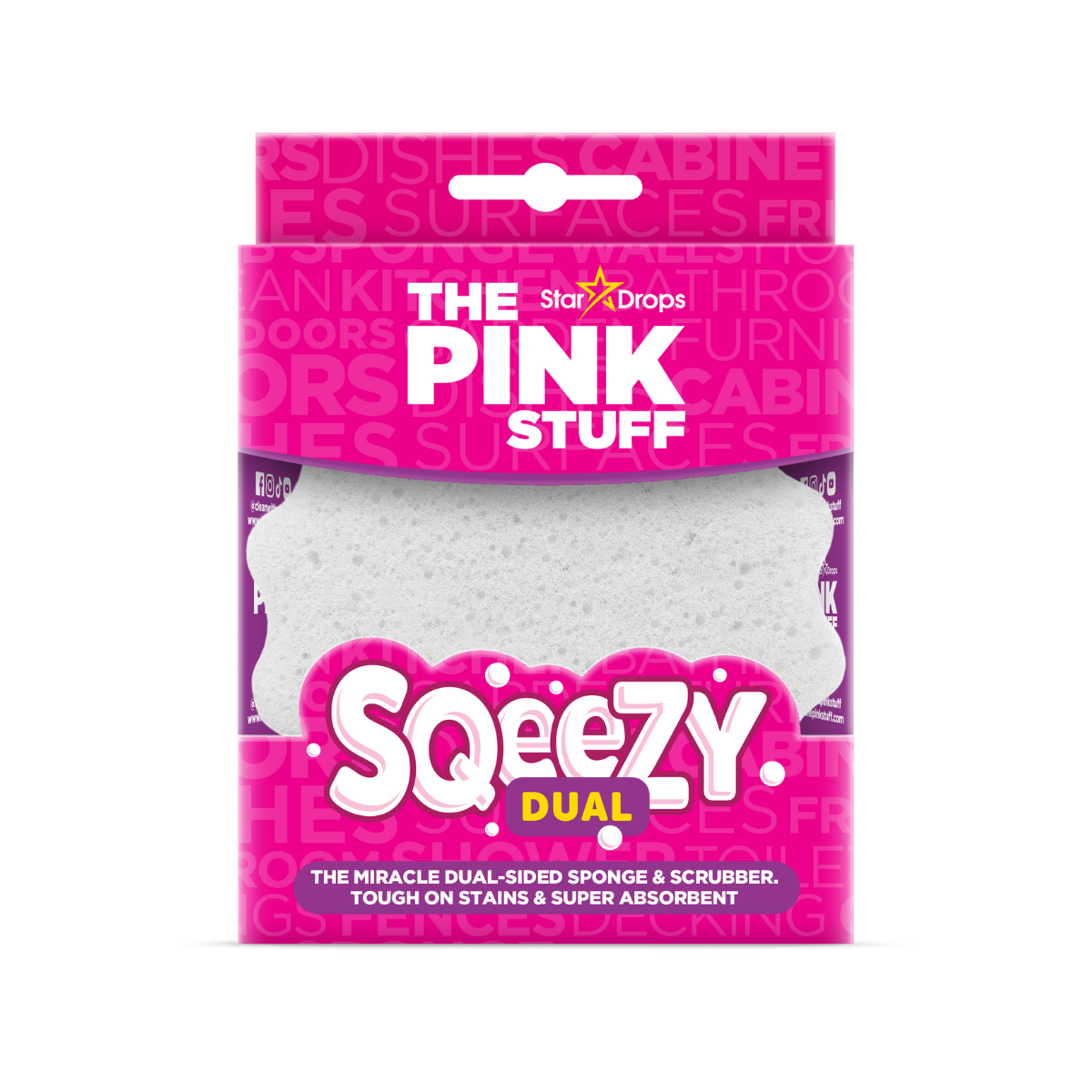 ¡Revoluciona tu rutina de limpieza con la esponja y estropajo de doble cara Sqeezy de The Pink Stuff! Diseñada para brindar resultados impecables, esta herramienta versátil es ideal para el hogar, la cocina, el baño e incluso espacios exteriores.