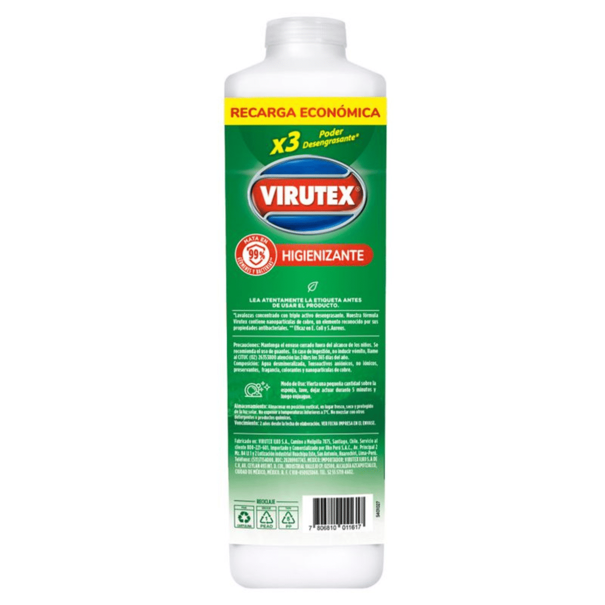Poder Desinfectante Avanzado: Virutex va más allá de la limpieza estándar al incorporar nano partículas de cobre en su fórmula. Este componente antimicrobiano mata el 99% de gérmenes y bacterias, proporcionando una protección adicional para tu vajilla y utensilios de cocina.