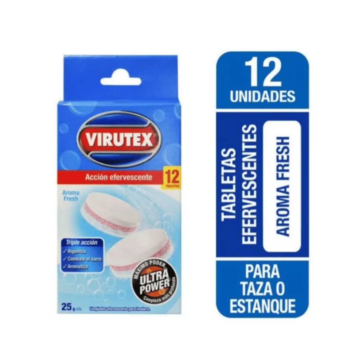 Pastillas Inodoro Efervescentes Antisarro Virutex 12 Unid: Eliminación eficaz de sarro, pack conveniente.