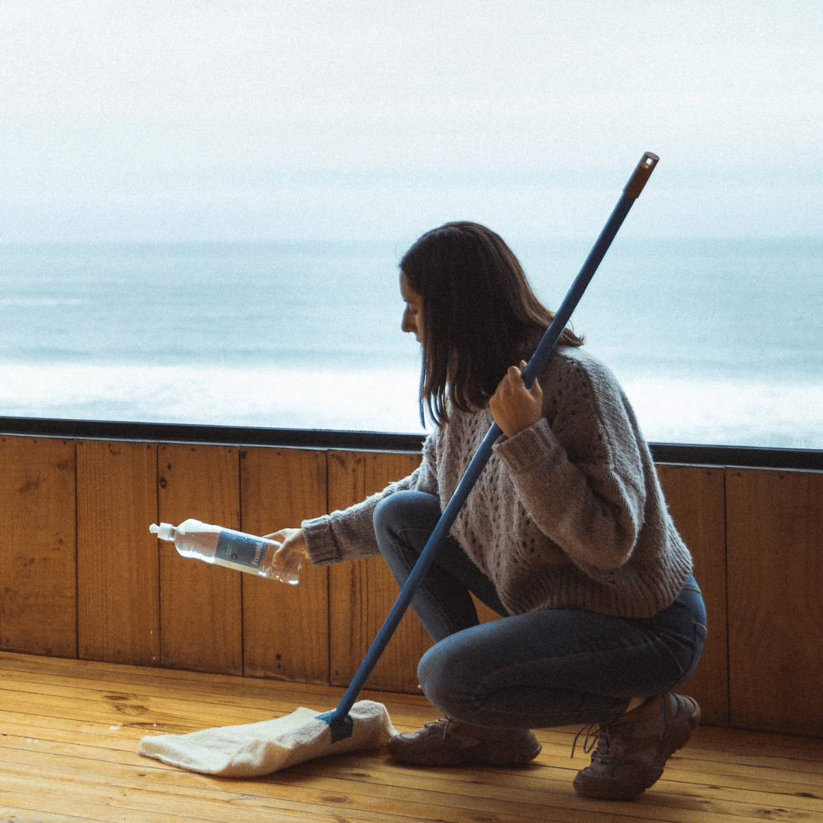 Distribuye de manera uniforme con una esponja, trapeador o paño.