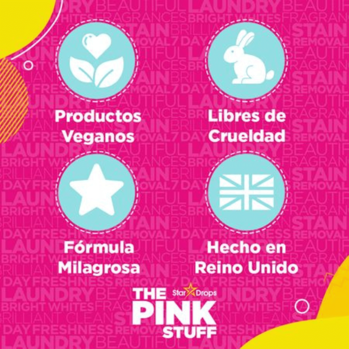 Empaques Reciclables y Libre de Crueldad Animal: Comprometidos con la sostenibilidad, The Pink Stuff se enorgullece de utilizar empaques reciclables y no realizar pruebas en animales. Un producto ético que respeta el planeta y a sus habitantes.