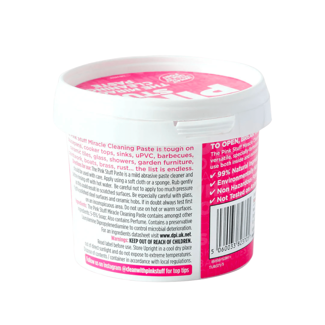 Formulación Natural y Vegana: Comprometidos con la sostenibilidad, The Pink Stuff presenta una fórmula compuesta en un 99% por ingredientes naturales. Este producto vegano no solo es efectivo en la limpieza, sino que también respeta el medio ambiente, siendo una elección consciente para aquellos que buscan productos de limpieza éticos.