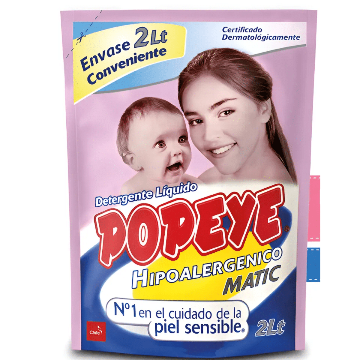 Detergente Líquido Popeye Hipoalergénico Doypack 2 L