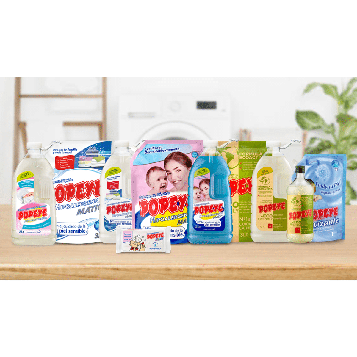 El Detergente Líquido Popeye Hipoalergénico Doypack 2 L está formulado para cuidar la piel más delicada,