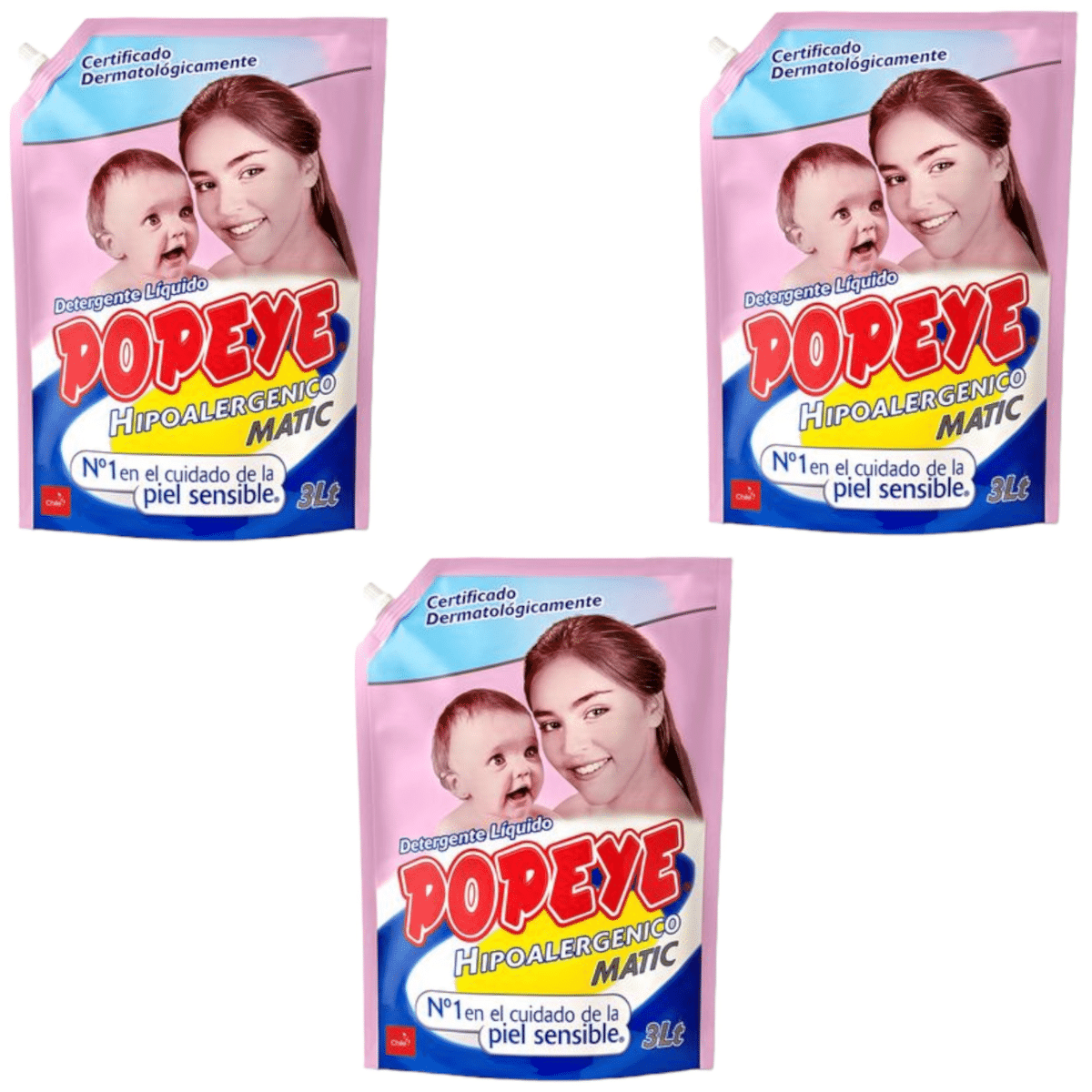 Características principales del Detergente Líquido Popeye Hipoalergénico Doypack 3 lts x 3 UN