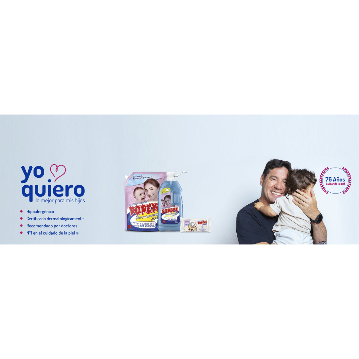 Popeye se distingue por su enfoque en la salud familiar y el respeto por el medio ambiente. La línea hipoalergénica está diseñada bajo exhaustivos controles de calidad para ofrecer productos de limpieza que protejan la piel sin renunciar a un alto poder desinfectante y conservante de colores.