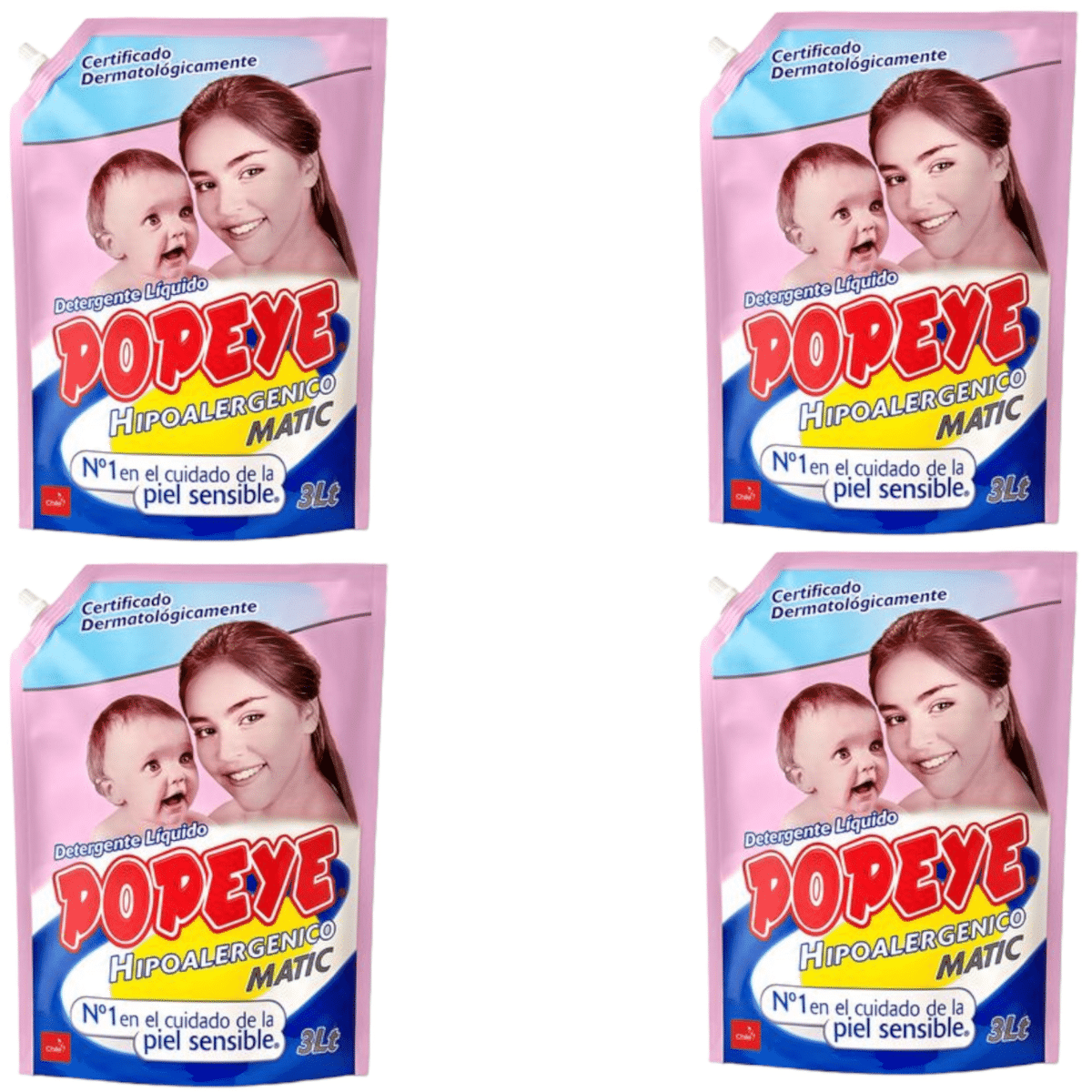 Características principales del Detergente Líquido Popeye Hipoalergénico Doypack 3 lts X 4 UN