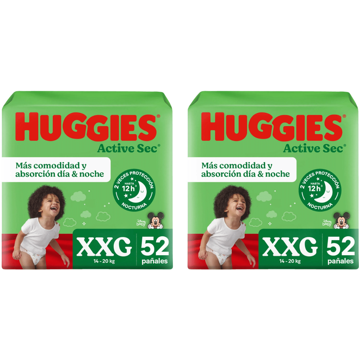 El Pañal Huggies Active Sec XXG 52 UN X 2 de Huggies es la solución ideal para mantener a tu bebé seco y cómodo durante hasta 12 horas. Diseñado con la tecnología XPAD, este pañal garantiza una absorción rápida y eficiente, evitando filtraciones y manteniendo la piel suave y protegida incluso en las horas de mayor descanso o juego.