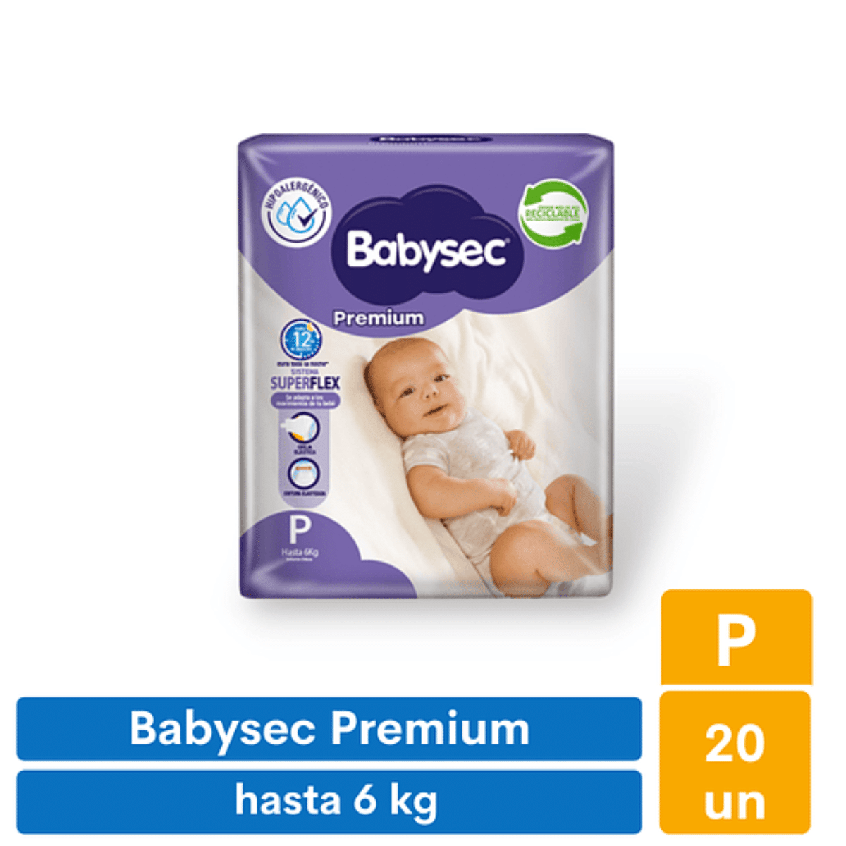 Pañales Babysec Premium P (20 unid): Suavidad y seguridad para los más pequeños, talla P.