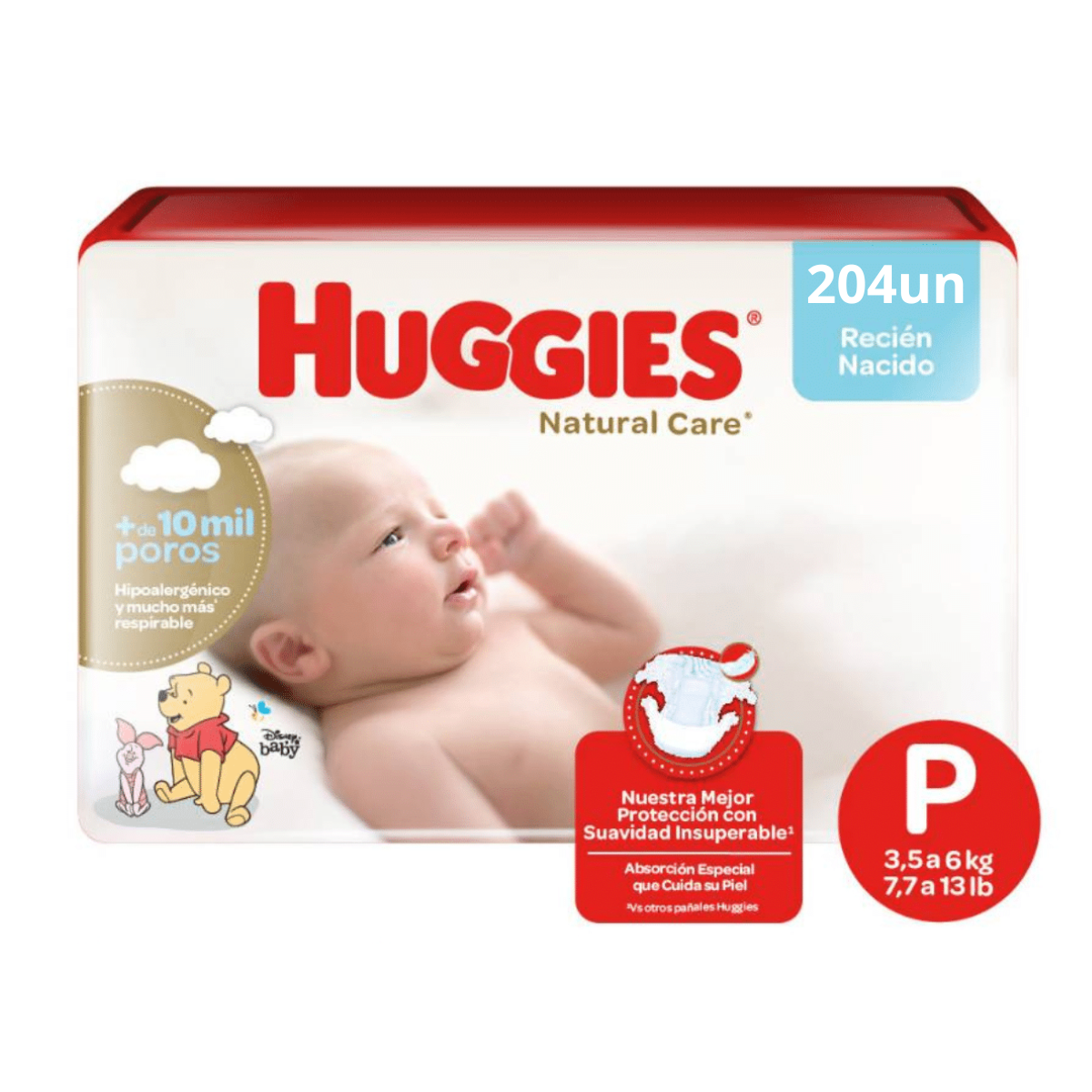 Pañales Huggies Natural Care P (204 unid): Pack económico, máxima protección P.