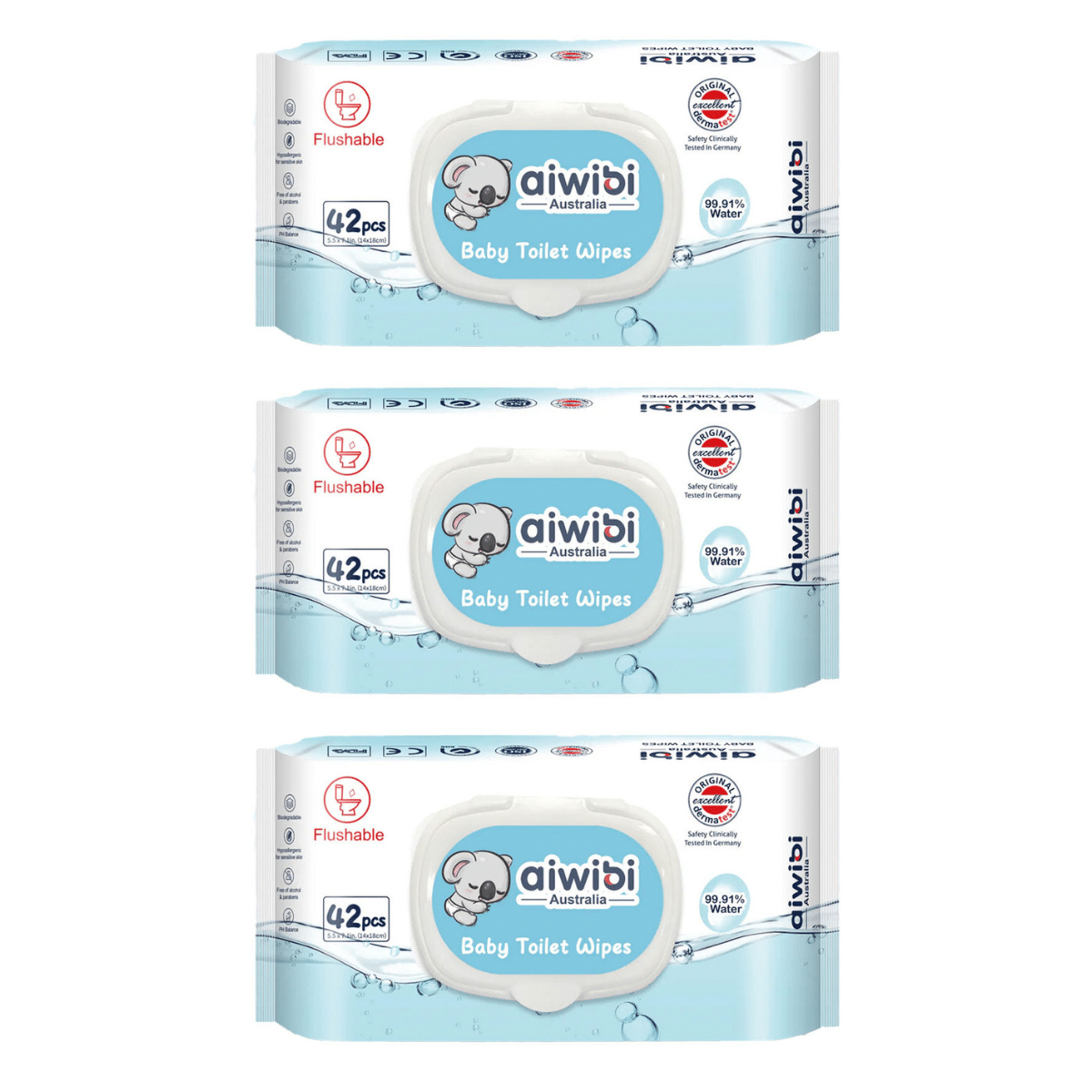 TOALLITAS HÚMEDAS AIWIBI 99.91% AGUA BIODEGRADABLE 42 UN X 3 PAQUETES
