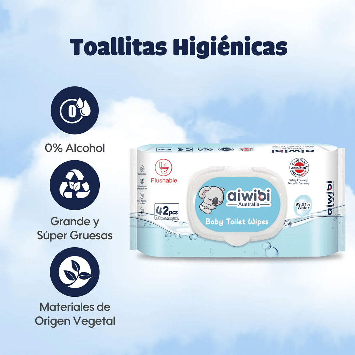 TOALLITAS HÚMEDAS AIWIBI 99.91% AGUA BIODEGRADABLE 42 UN