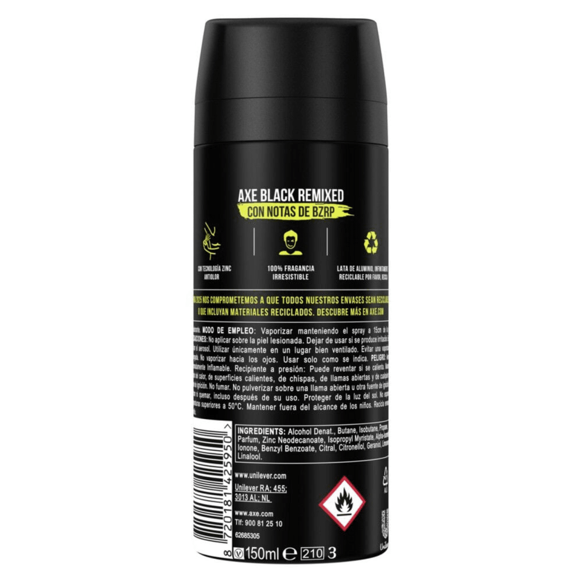 Prevención del Mal Olor: Axe Bizarrap es más que un desodorante común; es un escudo contra el mal olor que te mantiene fresco y confiado durante todo el día. Su fórmula avanzada actúa para neutralizar las bacterias causantes del mal olor, asegurando una protección duradera.