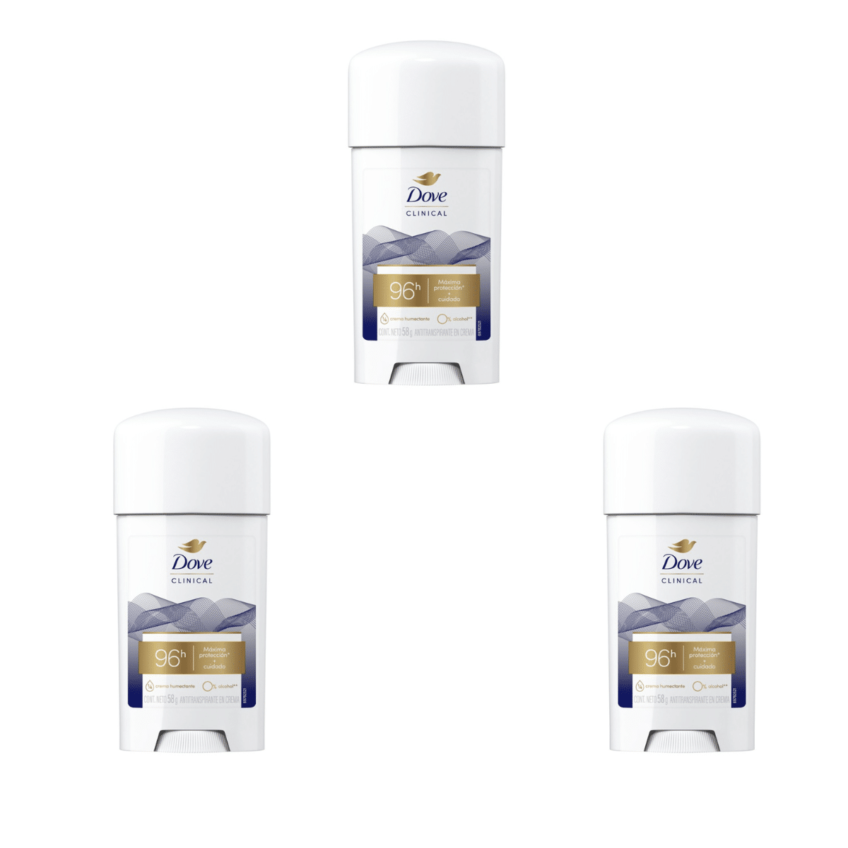 El pack de 3 unidades de desodorante Dove Clinical Barra Soft Original de 58 g cada una está formulado para ofrecer una protección antitranspirante de nivel clínico, pensada especialmente para pieles sensibles. Gracias a su combinación de activos antitranspirantes y un cuarto de crema humectante Dove, brinda hasta 96 horas de defensa comprobada contra el sudor y el mal olor, sin sacrificar la suavidad de tus axilas.