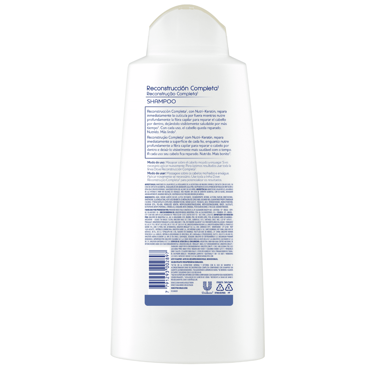 El shampoo Dove Reconstrucción Completa 750 ml combina la tecnología Nutri-Keratin con la fórmula de limpieza suave de Dove para ofrecer un tratamiento integral en cada lavado.