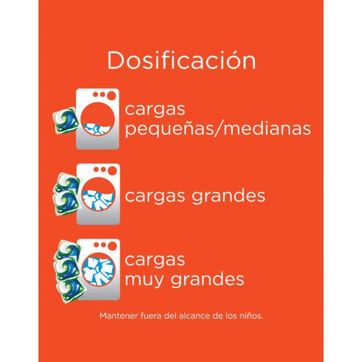 Detergente, Quitamanchas y Abrillantador: Con Tide PODS, obtienes los beneficios de un detergente de alta calidad, un quitamanchas eficaz y un abrillantador que revitaliza tus prendas. Una solución completa para el cuidado de tu ropa.