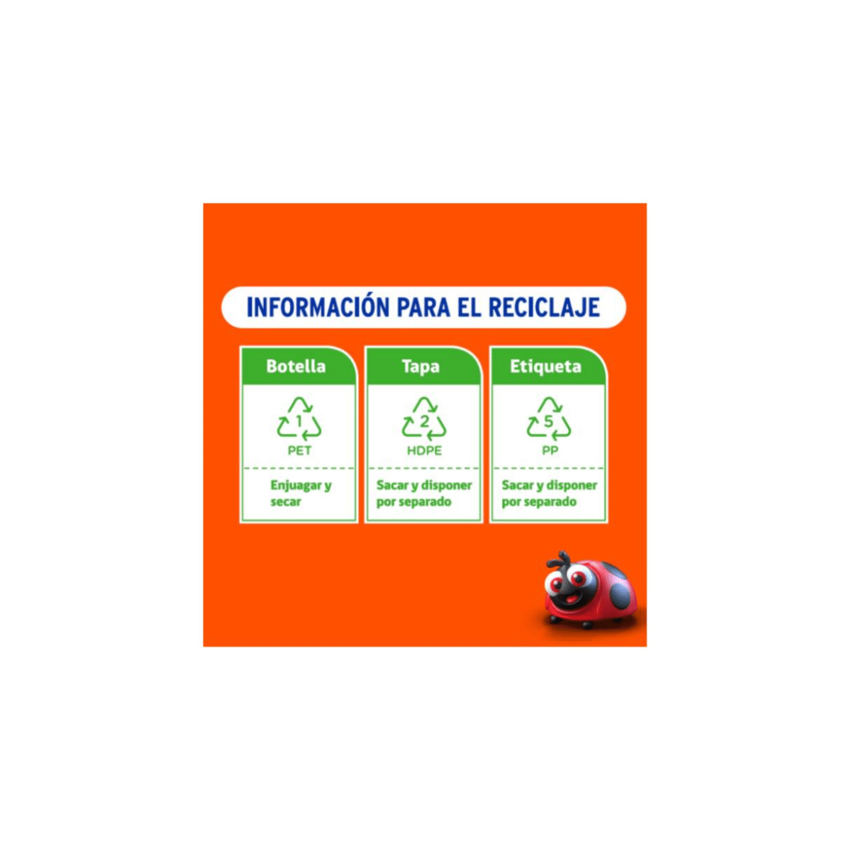 Envase Reciclable: Comprometidos con la reducción de residuos, el envase del detergente es 100% reciclable, contribuyendo a un ciclo de vida más sostenible.