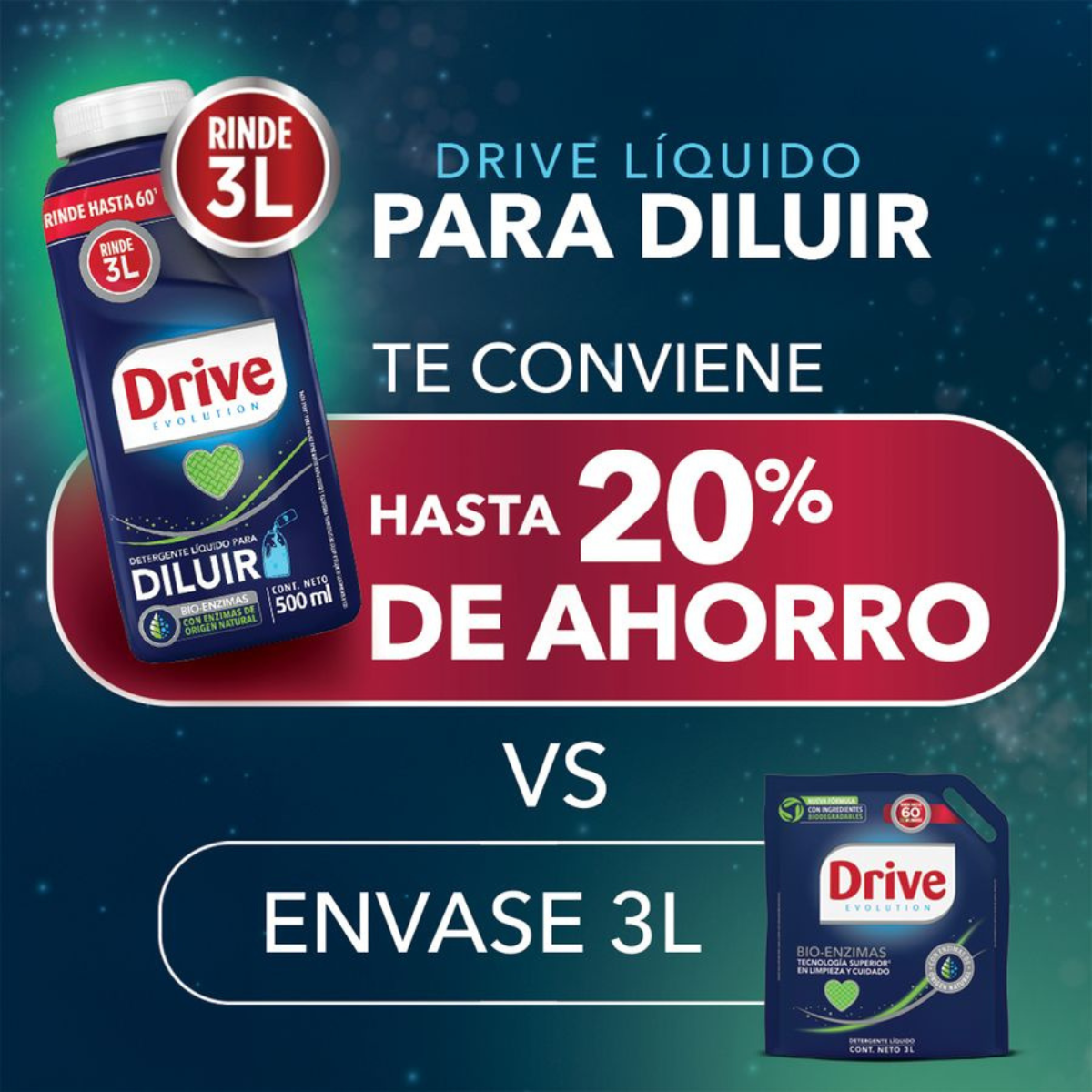 Descubre el poder del cuidado inteligente con Drive Detergente Líquido Bioenzimas DP 2,7 L, la solución ideal para mantener tu ropa impecable, cuidada y con un aroma floral duradero. Formulado con bioenzimas de origen natural y un toque de Comfort, este detergente líquido brinda una limpieza efectiva que remueve las manchas más difíciles sin dañar las fibras textiles.